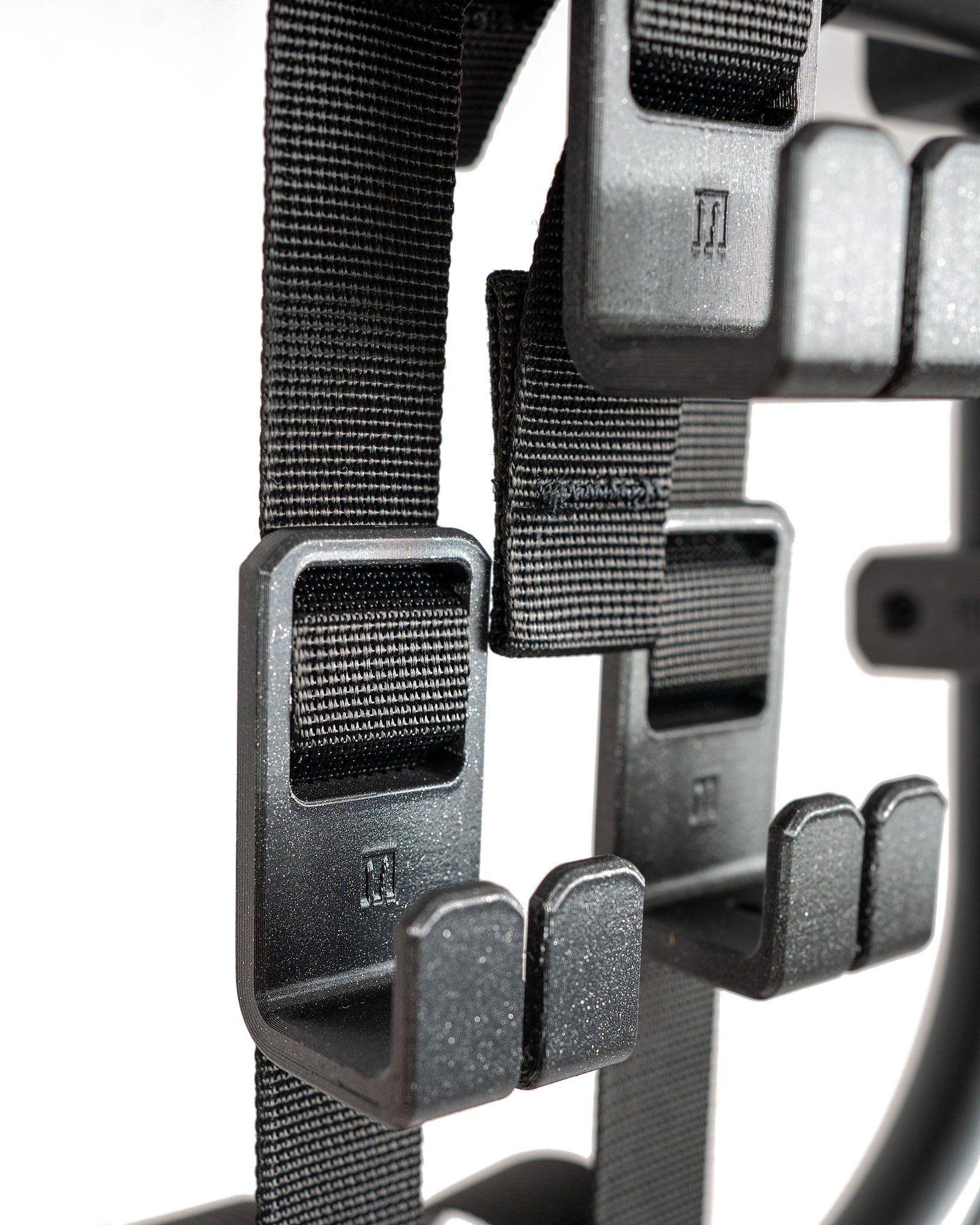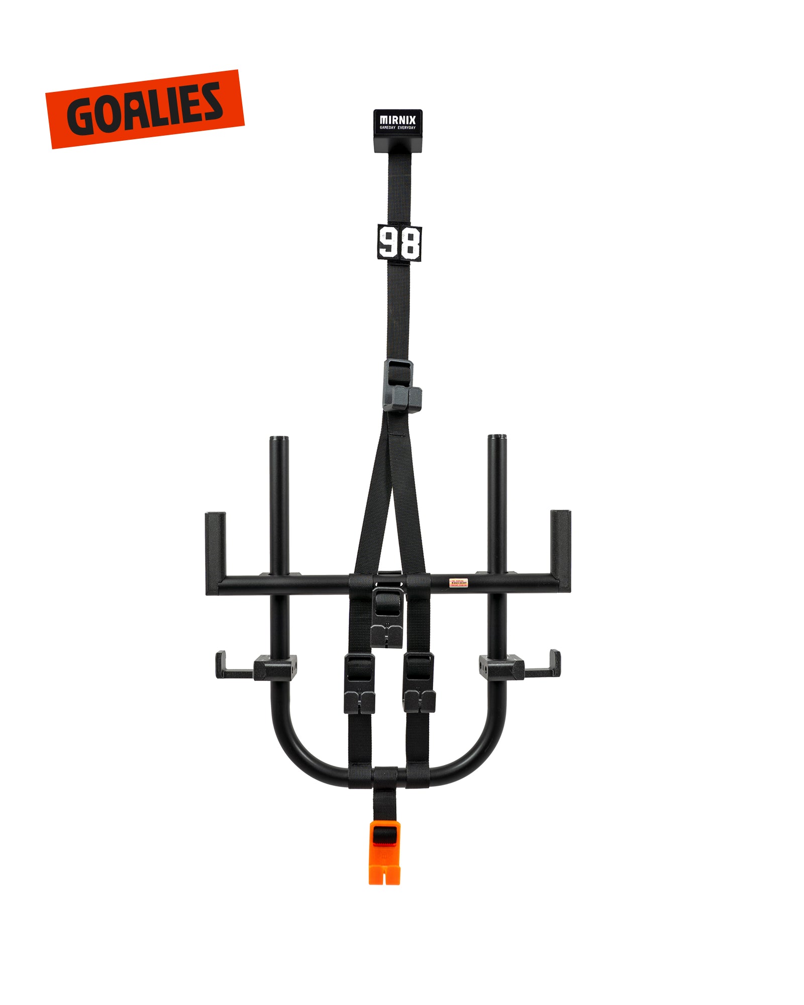 To si piš. A dokonce i brankářská! Hooking má speciální háky na brusle, rukavice a holeně, plus dalších 5 double háčků na celý zbytek gearu. Bez problému tam pověsíš ribano, ručník, dres, batoh… prostě všechno, co po tréninku řešíš. A vestu dáš na přídavný ramínko, který k Hookingu dostaneš automaticky.