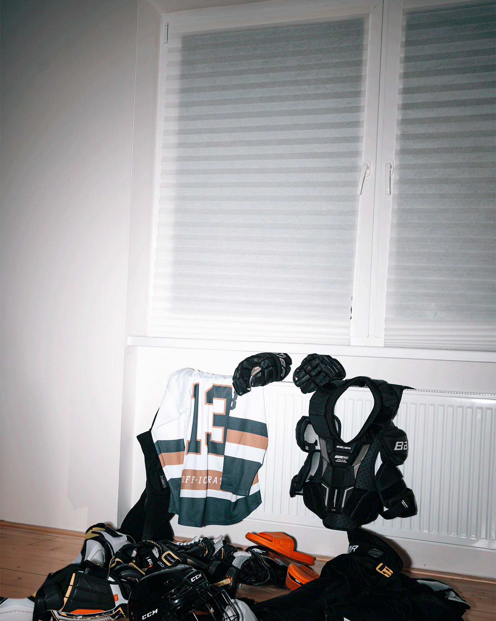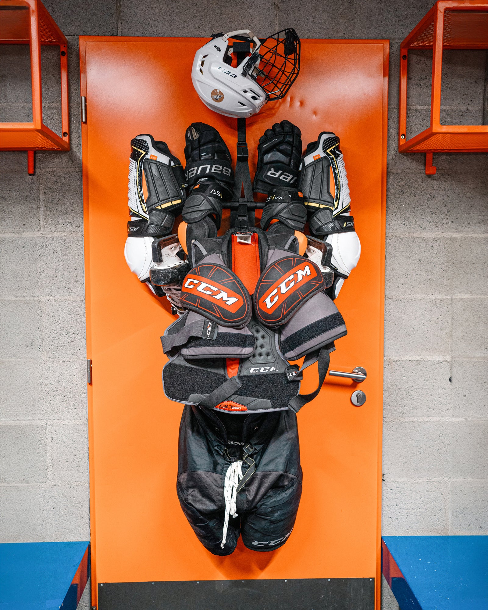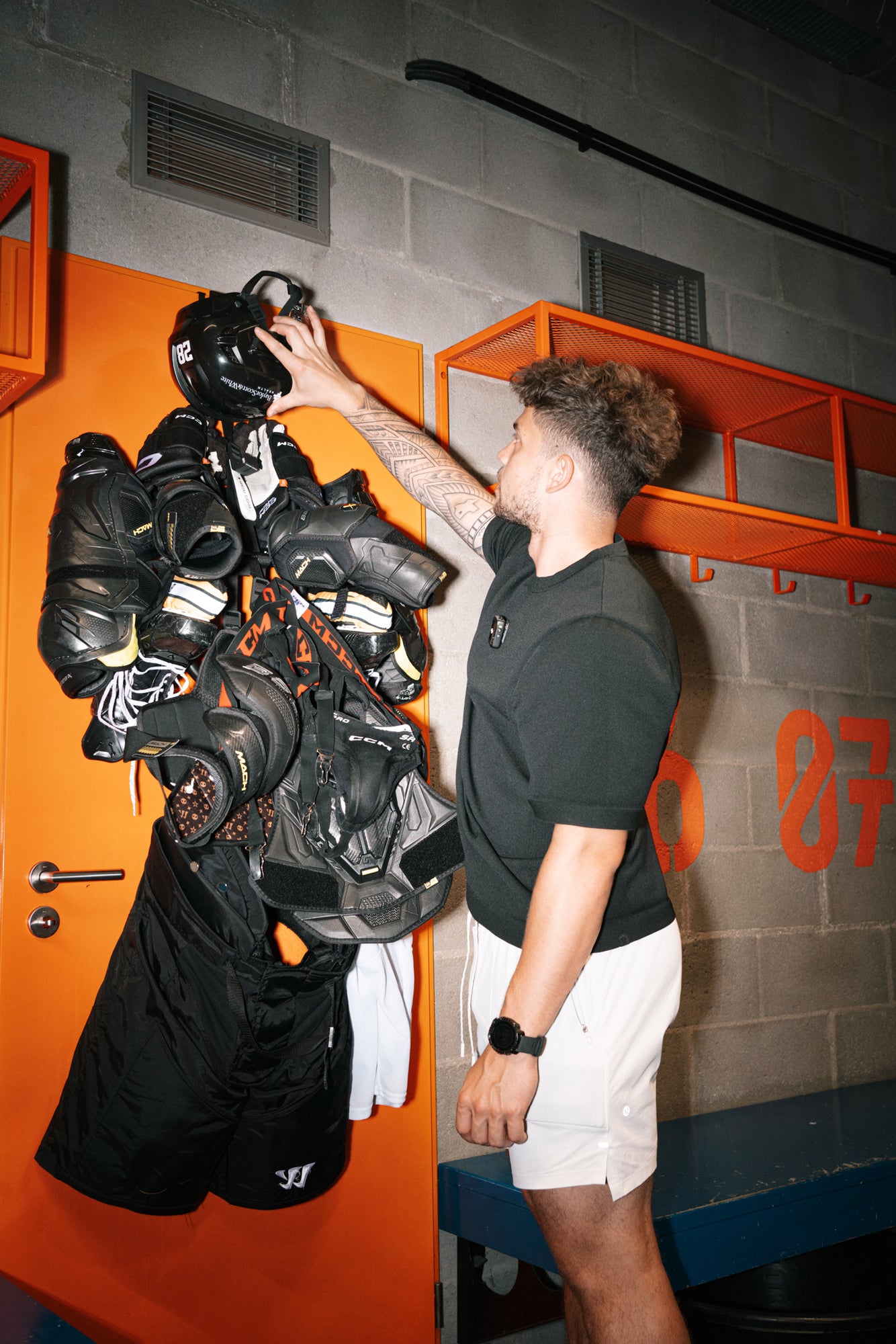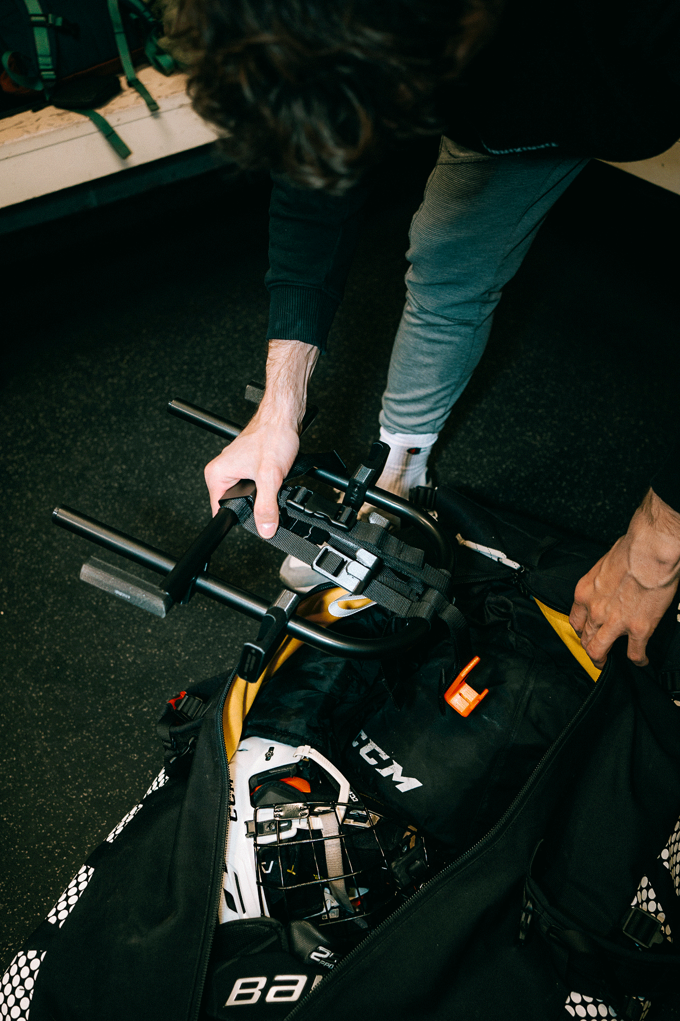 To si piš. A dokonce i brankářská! Hooking má speciální háky na brusle, rukavice a holeně, plus dalších 5 double háčků na celý zbytek gearu. Bez problému tam pověsíš ribano, ručník, dres, batoh… prostě všechno, co po tréninku řešíš. A vestu dáš na přídavný ramínko, který k Hookingu dostaneš automaticky.
